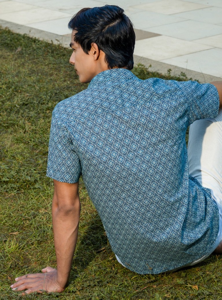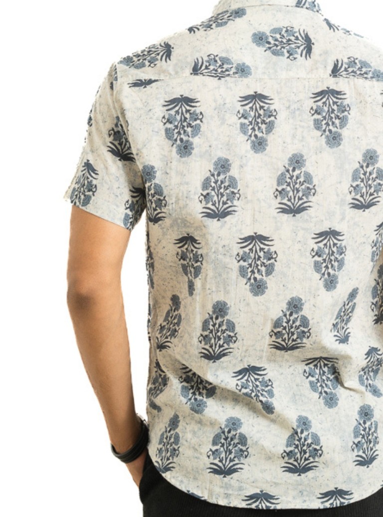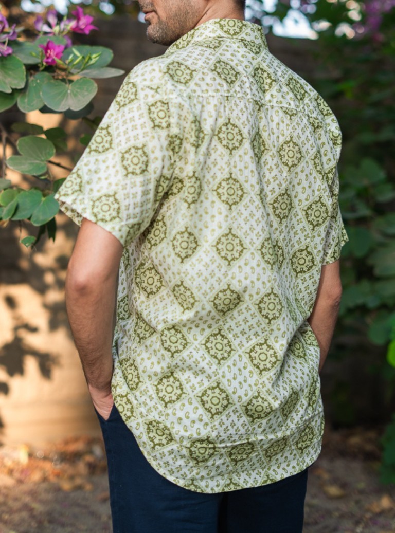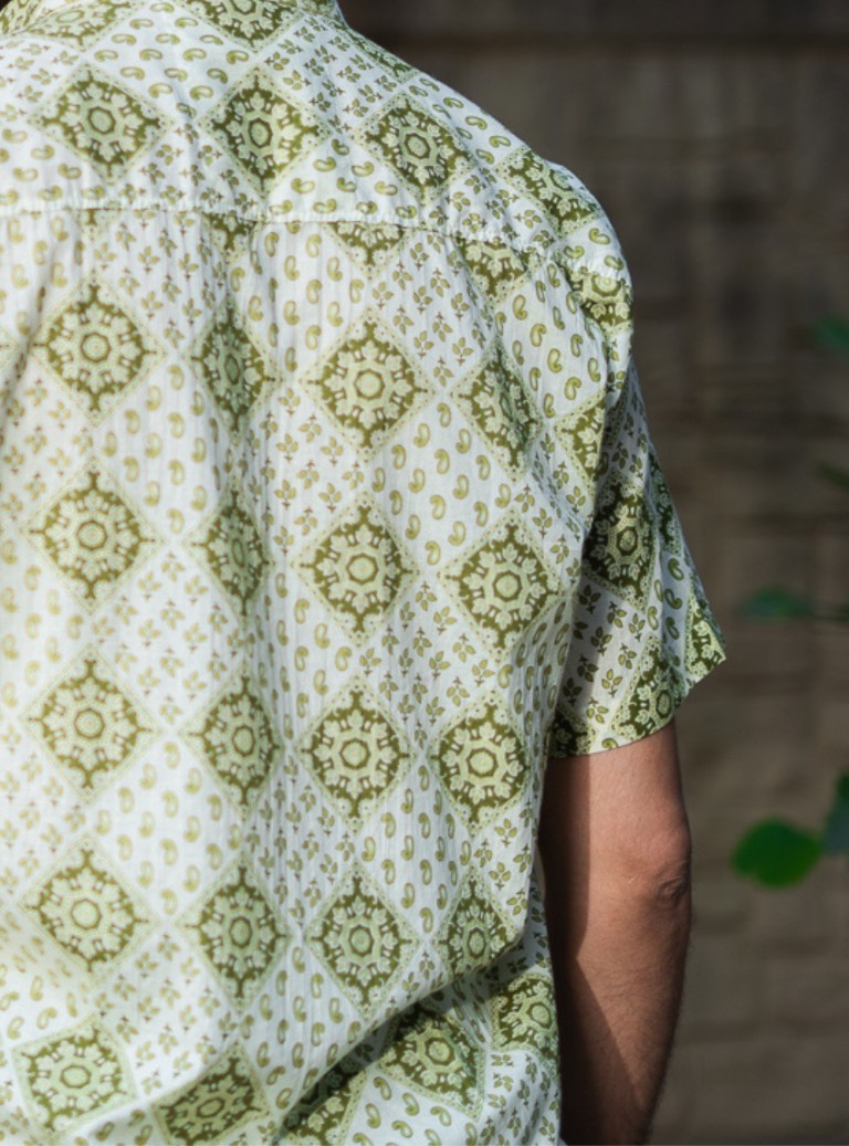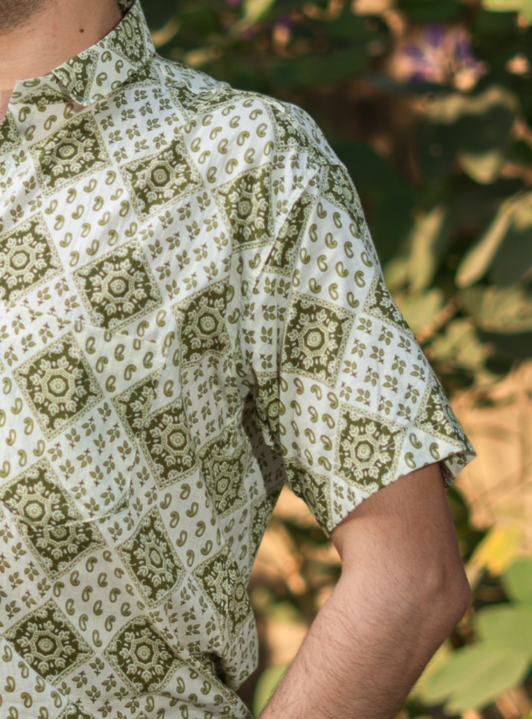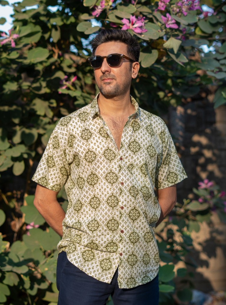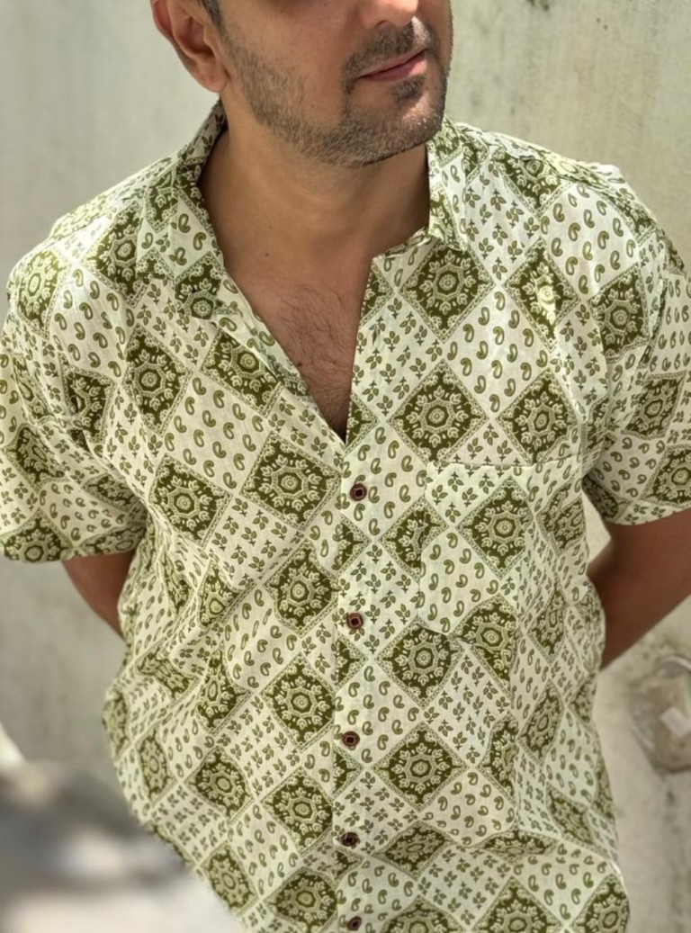 Crafted in pure cotton, the Aalam Shirt pairs an olive–ivory block-print pattern with effortless comfort. Soft, breathable, and ideal for daily wear.